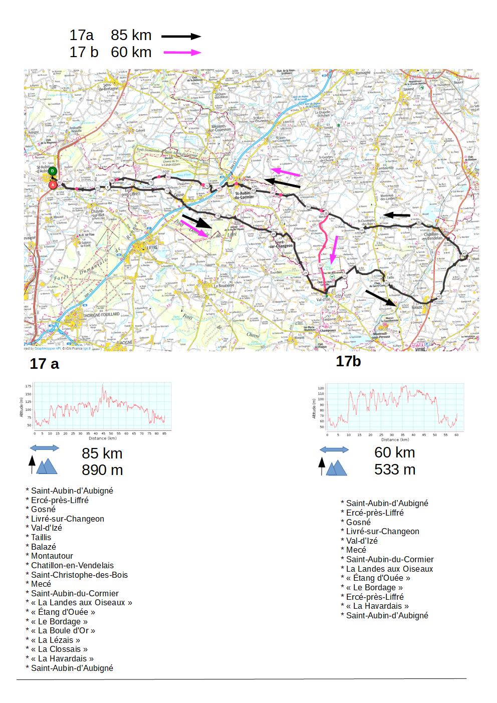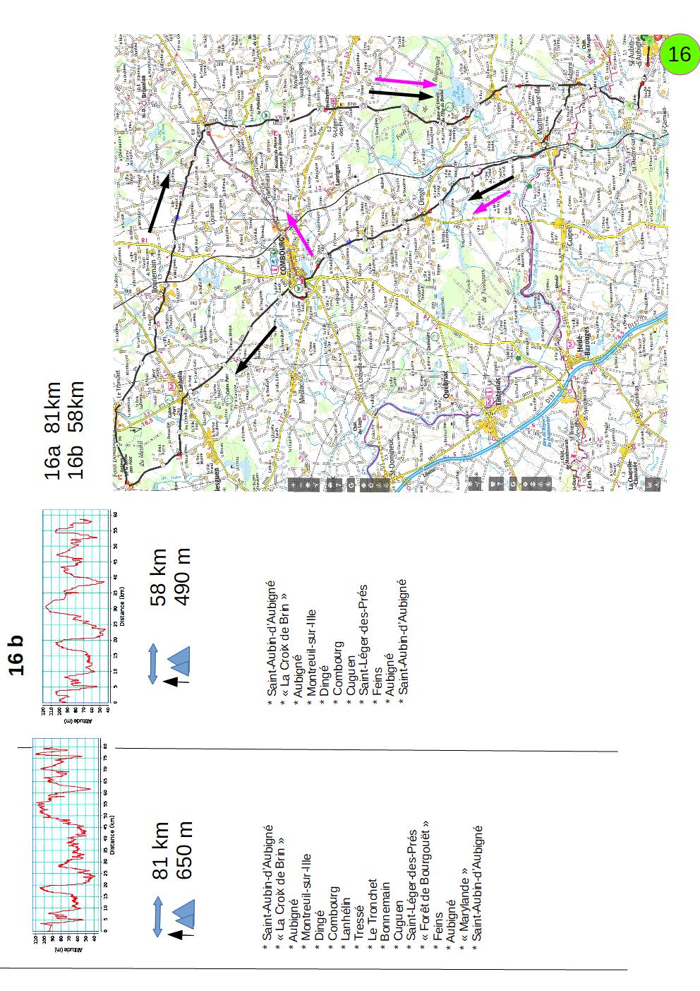 * Saint-Aubin-d’Aubigné * « La Croix de Brin » * Aubigné* Montreuil-sur-Ille * Dingé * Combourg * Cuguen * Saint-Léger-des-Prés * Feins* Aubigné * Saint-Aubin-d’Aubigné